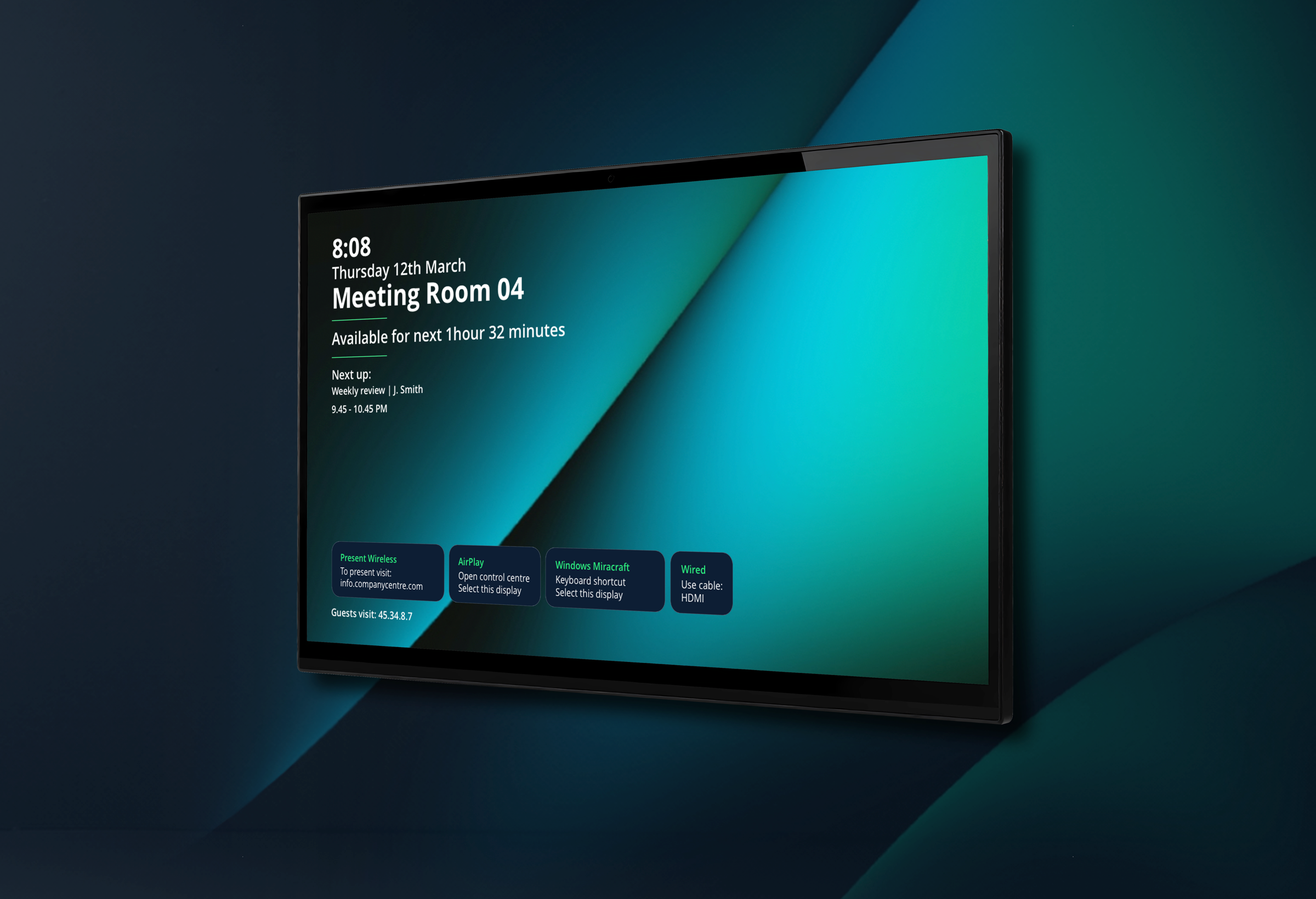 When not in use, turn the Meeting Room display into effective digital signage engaging and informing your colleagues and welcoming your guests.